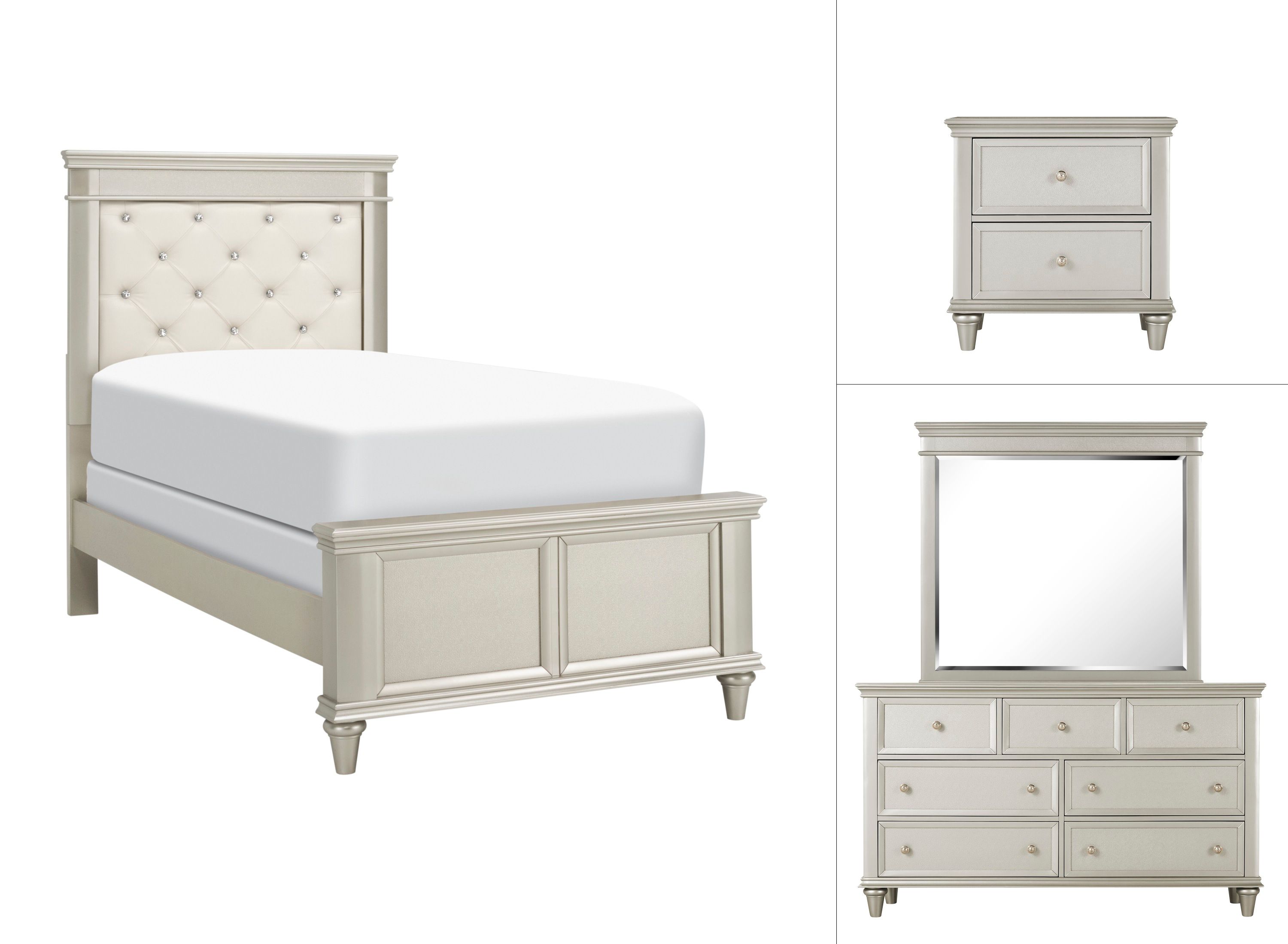Homelegance tamsin collection 4 piece bedroom set in silver grey metallic designed to help your bedroom reach its full.